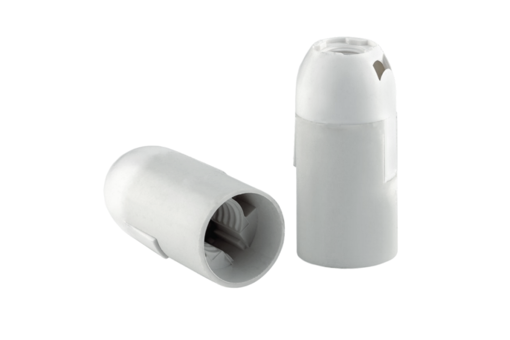 Патроны из термостойкого пластика являются наиболее современным решением, специальные виды пластиков, использованные при изготовлении, являются надежными диэлектриками, весьма устойчивы к нагреву, благодаря пластичности позволяют придать точную форму при обработке, не являются хрупкими.