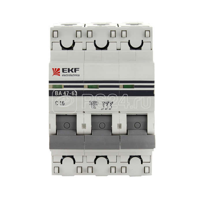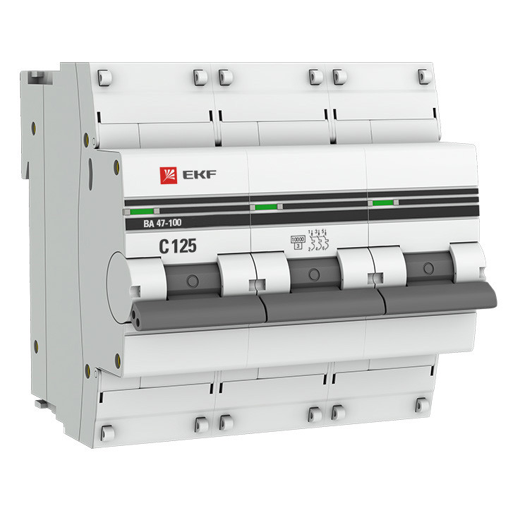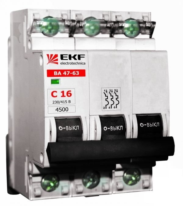 Автоматические выключатели ВА 47-63 4,5 кА EKF PROxima являются механическими коммутационными аппаратами, производятся в одно-, двух-, трех- и четырехполюсном исполнениях и соответствуют ГОСТ Р50345-2010. Особенностью данной серии выключателей является усовершенствованная конструкция. В выключателях имеются пластиковые крышки, закрывающие доступ к винтовому зажиму и служащие для опломбирования выключателей, что исключает несанкционированный доступ к проводникам. Корпус выключателей усилен дополнительными заклепками для устранения эффекта расхождения корпуса. Выключатели оборудованы удобной ручкой управления, обеспечивающей надежное оперирование изделиями. На лицевой панели выключателей имеется цветовой индикатор состояния. Конструкция установочного зажима обеспечивает свободную установку выключателя на DIN-рейку.
